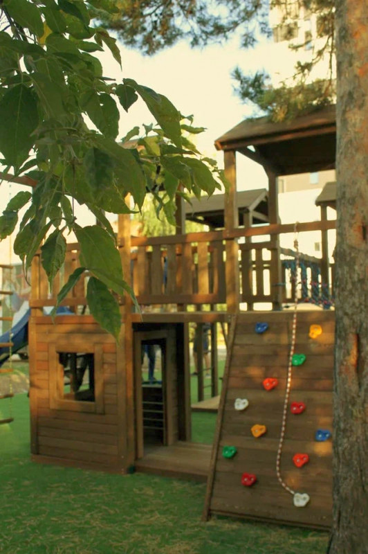 Для создания игровой зоны на прицерковной территории было необходимо детское оборудование. Заказчик просил предложить модели для детей 7-14 лет, включающие лазелки, качели, лестницы. А также найти отдельно стоящие горку, качели, песочницу. Приниципиальным моментом было наличие ската горки из пластика. Менеджер подобрал разные варианты с учётом всех просьб заказчика. Клиенту больше всего понравился комплекс, включающий всё желаемое оборудование.